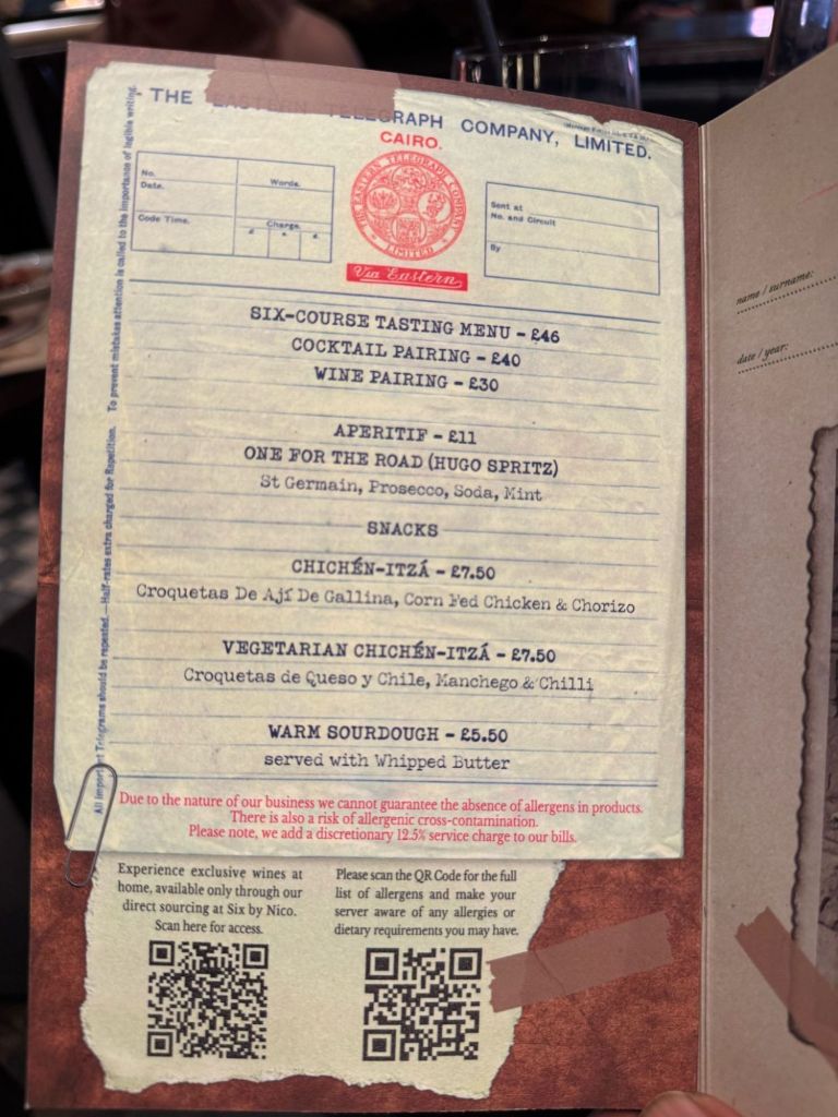 The fantabulous Six by Nico has launched a new problem solving 9 course (plus the option of 2 buy on courses) taster menu. When you walk in, you are armed with an adventurers toolkit, and the journal of Nicolas Bogg, 6BN’s equivalent of Indiana Jones. To say I was excited about it is an understatement