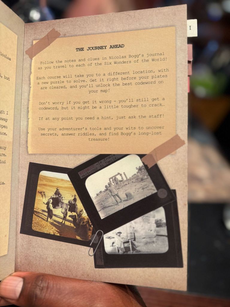 Its kind of strange writing about this one, as I really dont want to give too much away and spoil the quest, but, the next courses take you on a tour of the 6 wonders of the World found by Nicolas Bogg. You are taken to Greece, Rome, Egypt, Asia, Brazil and India, with the food reflecting those countries influence in the tastes of the food too. Each course is a different clue, and you need the clues to solve the puzzle at the end to get to the treasure….