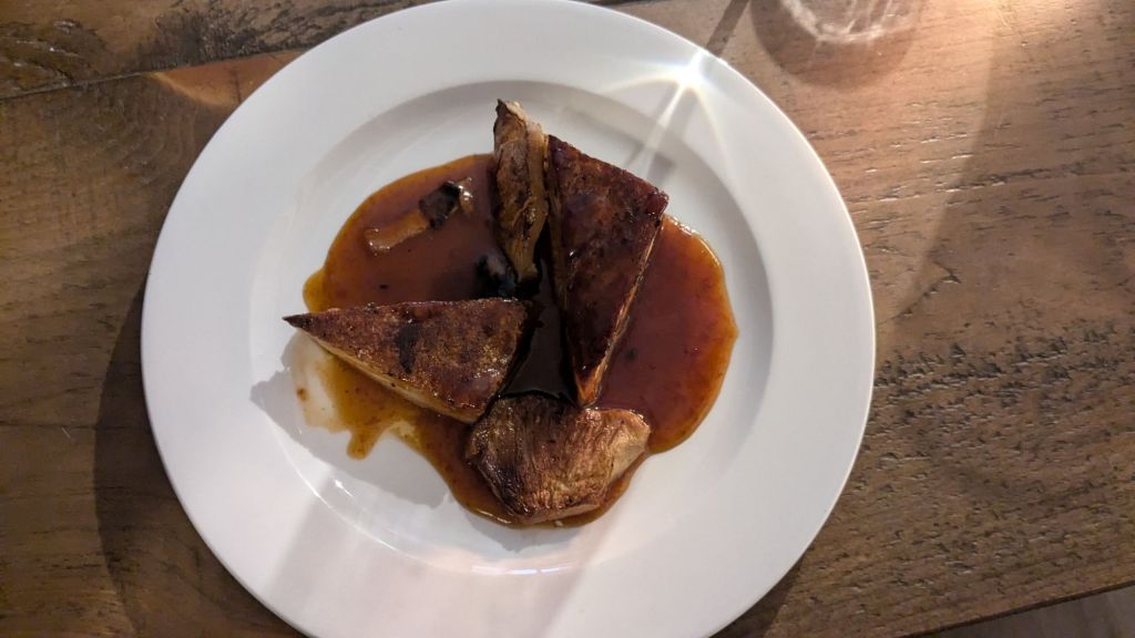 Again there’s a few veggie and vegan options but Jay went for the impossible steak. As a non vegan, to me this was freaking magic. It’s a watermelon steak smoked and cut and cooked until it tastes and looks like meat. It’s literally sorcery.