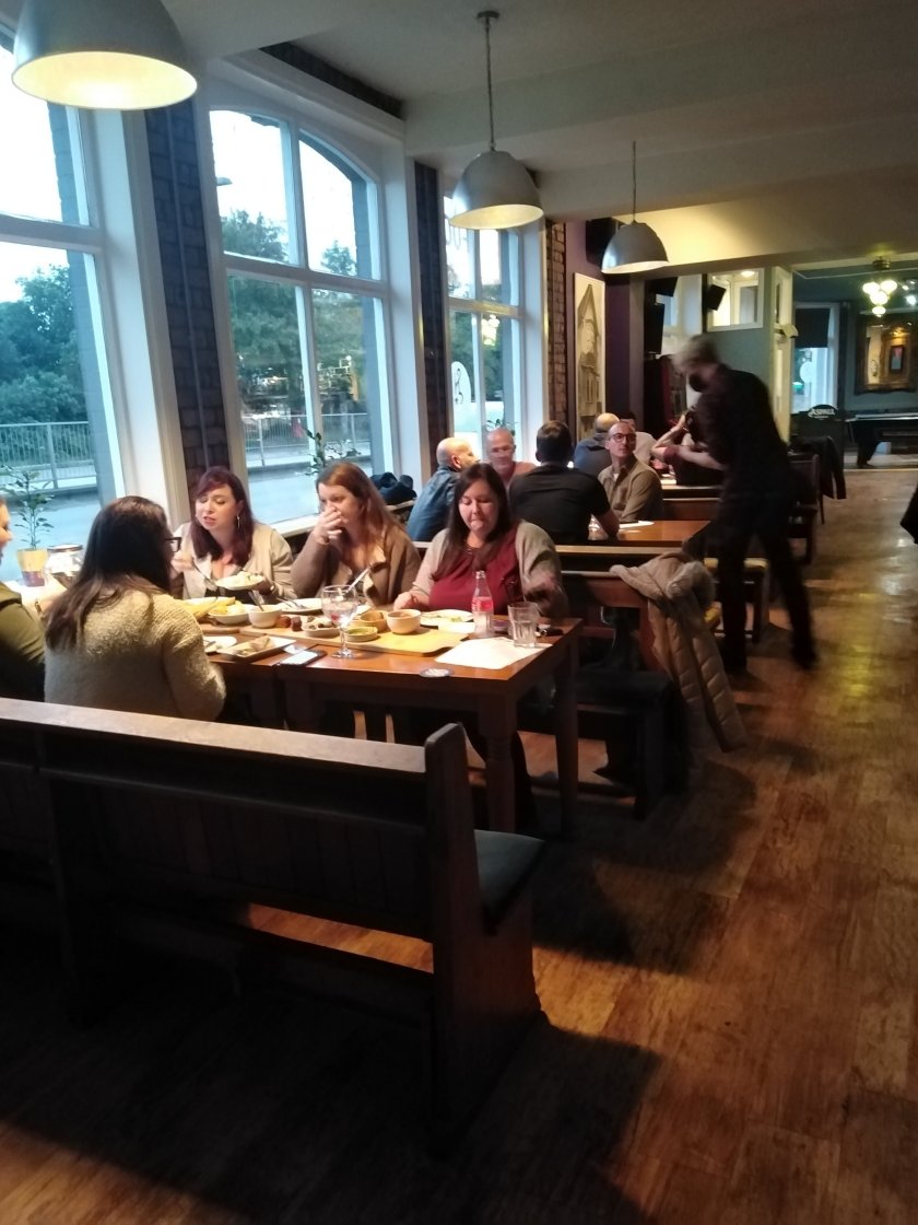 The decor has been upgraded with brightly coloured walls, Moroccan styled tiles and new furniture. This place is quirky but not in your face and trying too hard to be the new kid on the block.Its not very often I get surprised, but I was served DEEP FRIED LASAGNA STIX. Yes you read that right…. deep fried gooey cheesy and tomatoey deep fried lasagne… with extra cheese sauce. It was heaven. Heaven on a plate. Dave by trade is a Chef, so you can guarantee a good plate of food here, and I know Sunday roasts are going to fast become one of their specialties. The drinks menu is extensive and the gin menu huge. I washed down my lasagne stix with a large Pollination Gin.